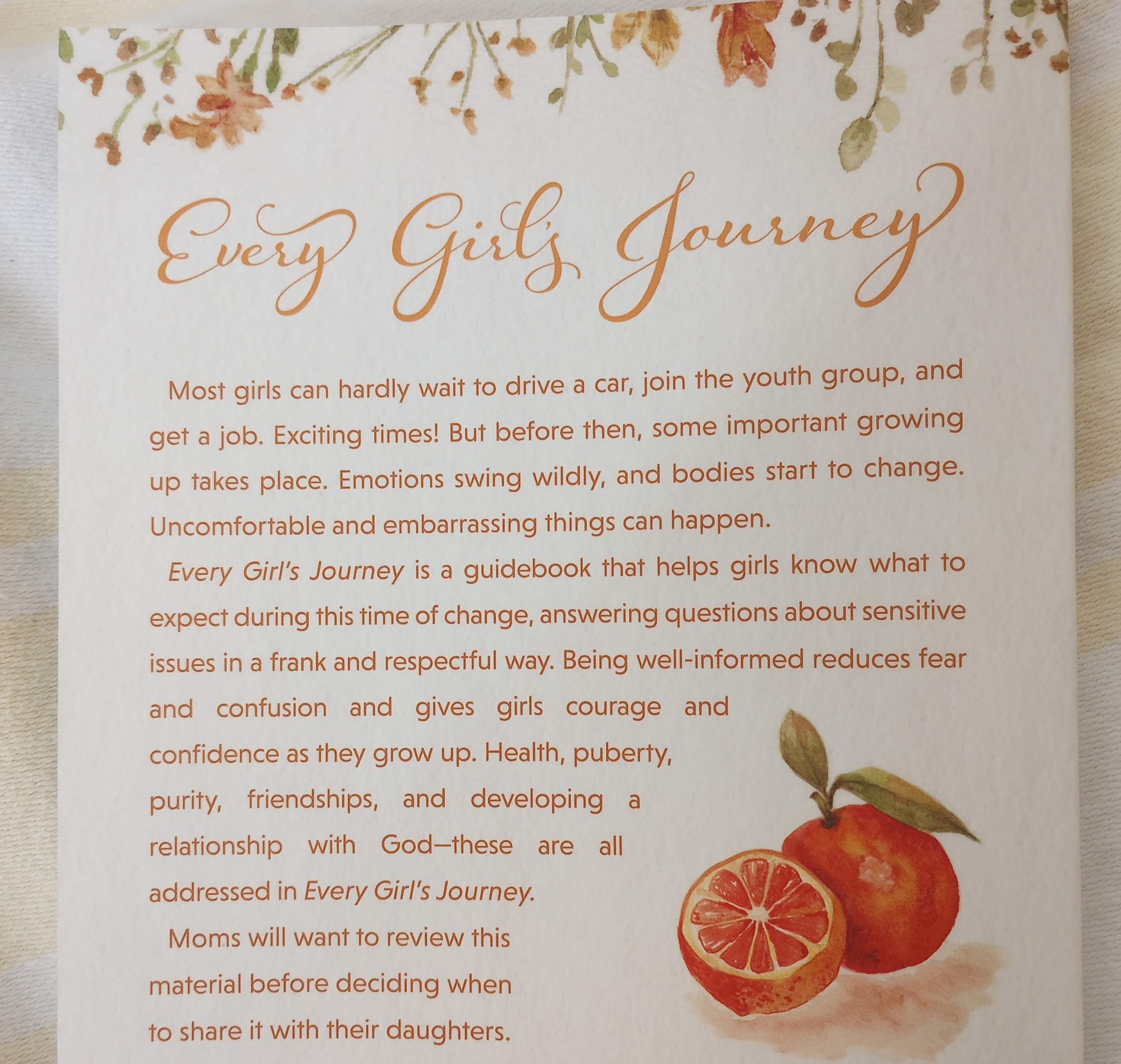 “Every Girl’s Journey” sounds like something I have been searching for in preparation for my own daughters entering the tween years.